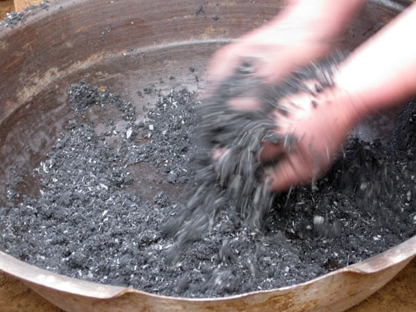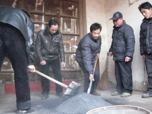 Das darf doch nicht wahr sein. Das Pulver stammt aus gekauften Feuerwerkskörpern die entleert in der Ecke liegen. Offensichtlich mit Salpeter aus Kunstdünger mischen sie das Pulver zu einer Feuerwerksmischung alla "Dorf Gucheng". Noch ein wenig Wasser zum andicken