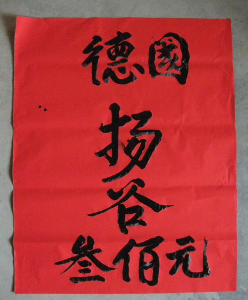 Aus Deutschland, Yang Ghu, 300 Yuan steht nun von oben nach unten auf dem Plakat.