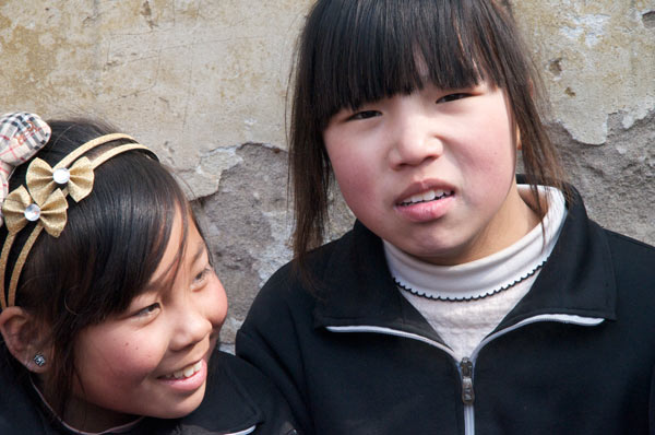 Unse nächste Aufgabe ist die Wushu-Gruppe beim Joggen durchs Dorf zu drehen. Eine Gelegenheit, über den Tagesablauf der jungen Kampfkünstler zu sprechen. 4.00 Uhr aufstehen und Jogging. Danach Training, Schule, Abendbrot und wieder Training von 7 Uhr abends bis 10 Uhr nachts. Schlafen gingen die Kleinen, erklärt Ray, zwischen elf und Mitternacht. Er, Ray, sei auf wenig Verständnis gestoßen, als er durchsetzte bis acht zu schlafen. Da er mit einigen der Schüler gemeinsam in der Hütte schläft, kann er auch schlecht vorher zu Bett gehen. Die Eltern dieser Kinder halten im Interesse der Teilnahmedisziplin an der Wushu-Schule es für besser, dass die Kleinen in der Hütte nah dem Tempel schlafen.