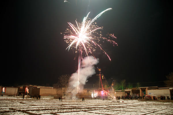 Die Wushuschule fährt heute schon einmal nicht zum großen Fest ins über eine Stunde entfernte Dorf. Sie müßten auf der offenen Ladefläche eines Lasters fahren. Bei dem Wetter völlig ausgeschlossen. Nicht das sie die Kälte schreckte. Es ist zu gefährlich wegen der vereisten Straßen.