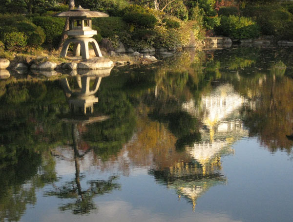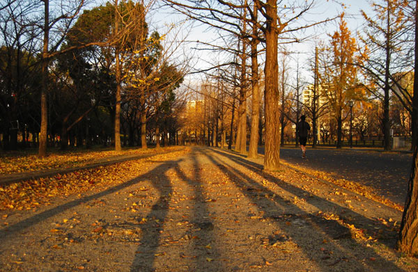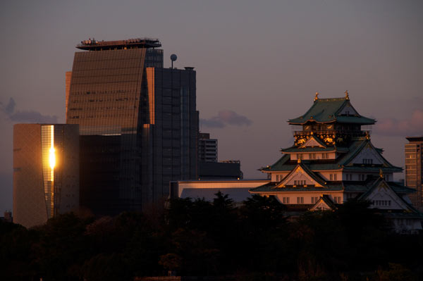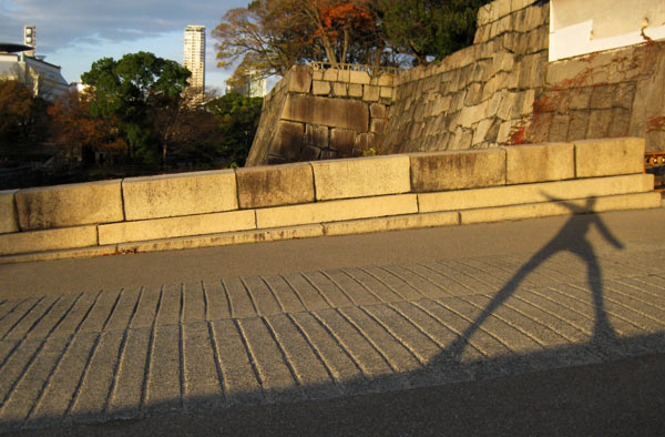 Direkt von meinem Balkon aus kann ich das alte Zentrum Osakas sehen, mit der wieder aufgebauten Burg. Ursprünglich aus Holz gebaut, ist sie mehrmals den Flammen und Krieg zum Opfer gefallen. Nach der letzen Teilverwüstung im 2. Weltkrieg verbaute man statt Holz halt Beton. Der Park darum herum ist Aufforderung genug für einen schönen Morgenlauf.
