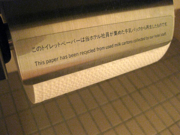 Dieses Klopapier ist recyled aus Milchkartons, die von den Hotelmitarbeitern gesammelt wurden. Aber es ist ein in der Lage pefektes Hotel.