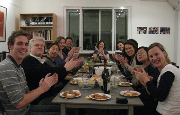 Allerdings sind die Restaurants, wo die Speisung der 5000 mit qualitativ hochwertigem Essen zu diesen Preisen noch möglich ist, in den letzten Jahren deutlich weniger geworden. Die Tendenz hält an. Letzte Woche haben wir das Studio spontan in einen Abschiedsfeierpartyraum umfunktioniert. Chin Chin hat gekocht, Andreas und Jennie Salat gemacht, Heiko drei gute Flaschen Roten besorgt und überhaupt jeder etwas leckeres beigesteuert.