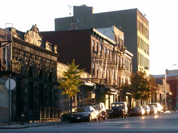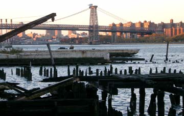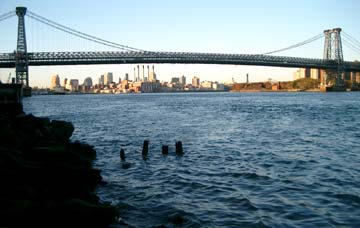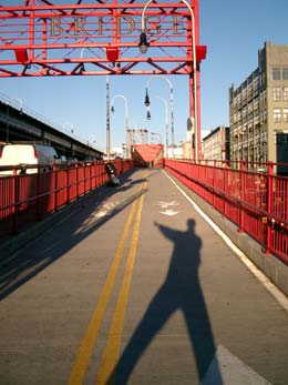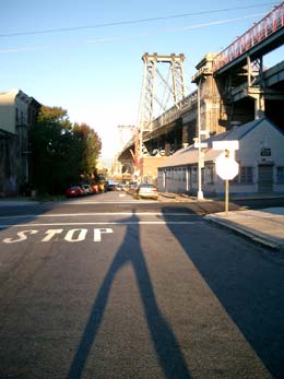 | Ein langer Strom Autos ergießt sich in Richtung Manhattan. Dann entdecke ich am Ufer zu Füßen der Manhattan Bridge einen kleinen Park. Es ist nur eine Wiese und ein Kletterbreich mit Gummimatten aber es ist ein Superblick auf beide Brücken. Es geht zurück in Richtung YMCA. Ich komme an ziemlich runtergekommenen Fabrikbauten vorbei aus denen es stinkt. Es sind Berge von Papier und Pappe drinnen aufgehäuft. Dann eine Werkstatt, in der ein Truck auseinandergenommen wird. Weiter in Richtung jüdisches Viertel. Und dann sehe ich sie. Mit schwarzen Mänteln die hohen Hüte auf dem Kopf, Bart und die Schläfenlocken fahren die orthodoxen Juden Auto, telefonieren mit dem Handy, bringen Kinder zum Schulbus oder laufen einfach auf der Straße umher. Ich traue mich das Fotografieren irgendwie nicht. |