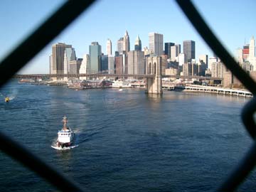 Ich laufe durch Chinatown. Irre wie plötzlich nicht nur englische sondern zum teil gar nur chinesiche Beschriftungen zu sehen sind. Und überall fahren die Schoolbusses herum. Ich überquere die Manhattan Bridge nicht ohne Bilder von der Brooklyn Bridge und Manhattan zu machen. Wieder auf der anderen Seite geht es zum Fuss der Brooklyn Bridge. |