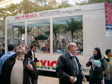 In diesem Werbetruck räkelten sich tatsächlich Leute und ein TV-Team drehte die Show.