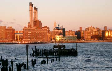 | Eine extreme Stadt animiert zu extremen Aktionen. 6.00 Uhr wache ich nach nur 4 Stunden Schlaf auf und bin putzmunter. Also die Joggingsachen an, den Fotoapparat umgeschnallt und los geht es. Ich laufe in Richtung East River. In diesem Bereich von Brooklyn liegen an seinem Ufer Industriegrundstücke. Viele nicht einsehbar mit Zäunen. Ich laufe an einer Abfüllstation für Kraftstoff-Liefer-Trucks vorbei. Dann folgt ein Fuhrpark für Müllautos und darauf eine Seitenstraße an deren Ende man das Ufer sehen kann. Ich laufe hin und betrete das Gelände einer Speditionsfirma. Ich frage zwei Leute ob ich ein Foto machen kann. Sie verweisen mich an das Büro und zeigen mir die Tür. Ich klingle und werde eingelassen. Am Desk frage ich nach der Erlaubnis für meine Fotos. Ein kurzer Anruf. Gesuch abgelehnt. Ich gehe etwas geknickt wieder auf den Hof, da winkt einer der Arbeiter und zeigt auf einen älteren Mann und bedeutet mir, ich solle ihn fragen. Tatsächlich gestattet der Typ das ich fotografiere, nachdem er sich hat sagen lassen woran ich interessiert bin und warum. |